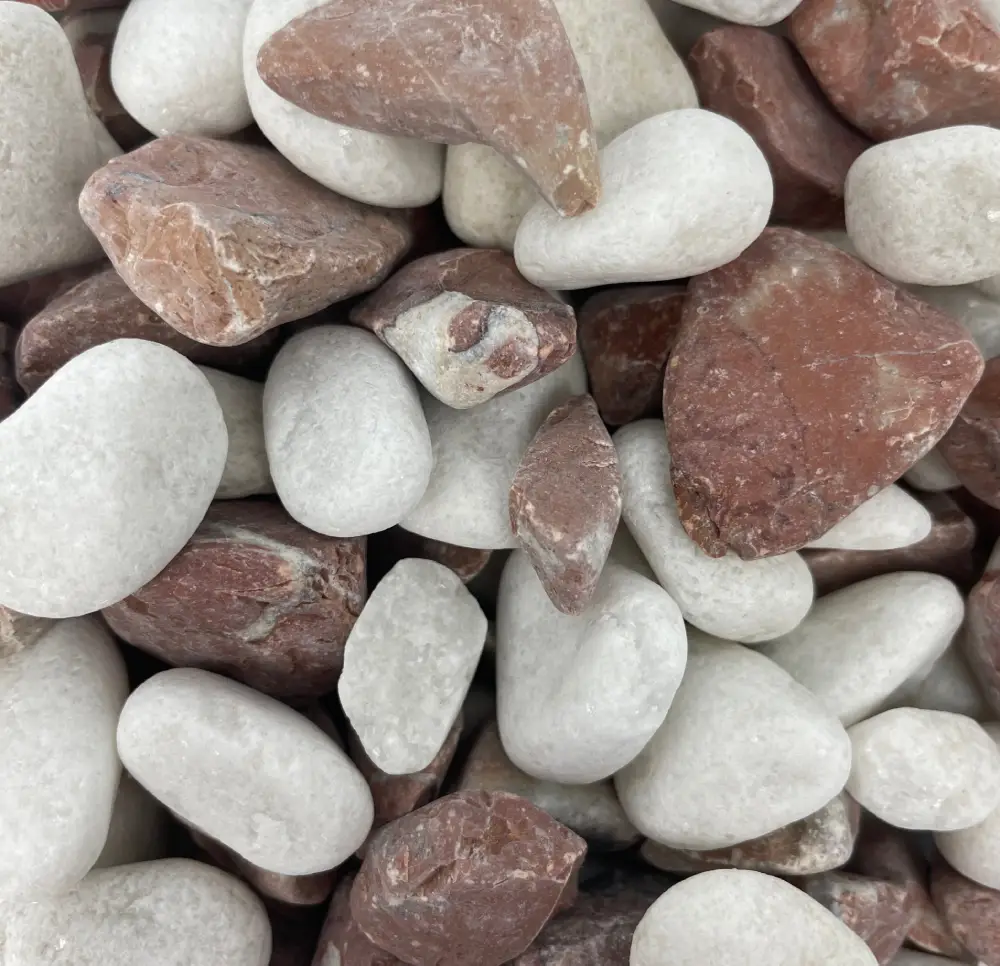 Le Galet BAYERN, composé de marbre blanc et rouge, apporte contraste et élégance à vos extérieurs. Idéal pour les paillages autour des arbres et des plantes, ainsi qu’à la décoration intérieure ou extérieures. Il marie la pureté du blanc à la chaleur du rouge, créant un effet unique.