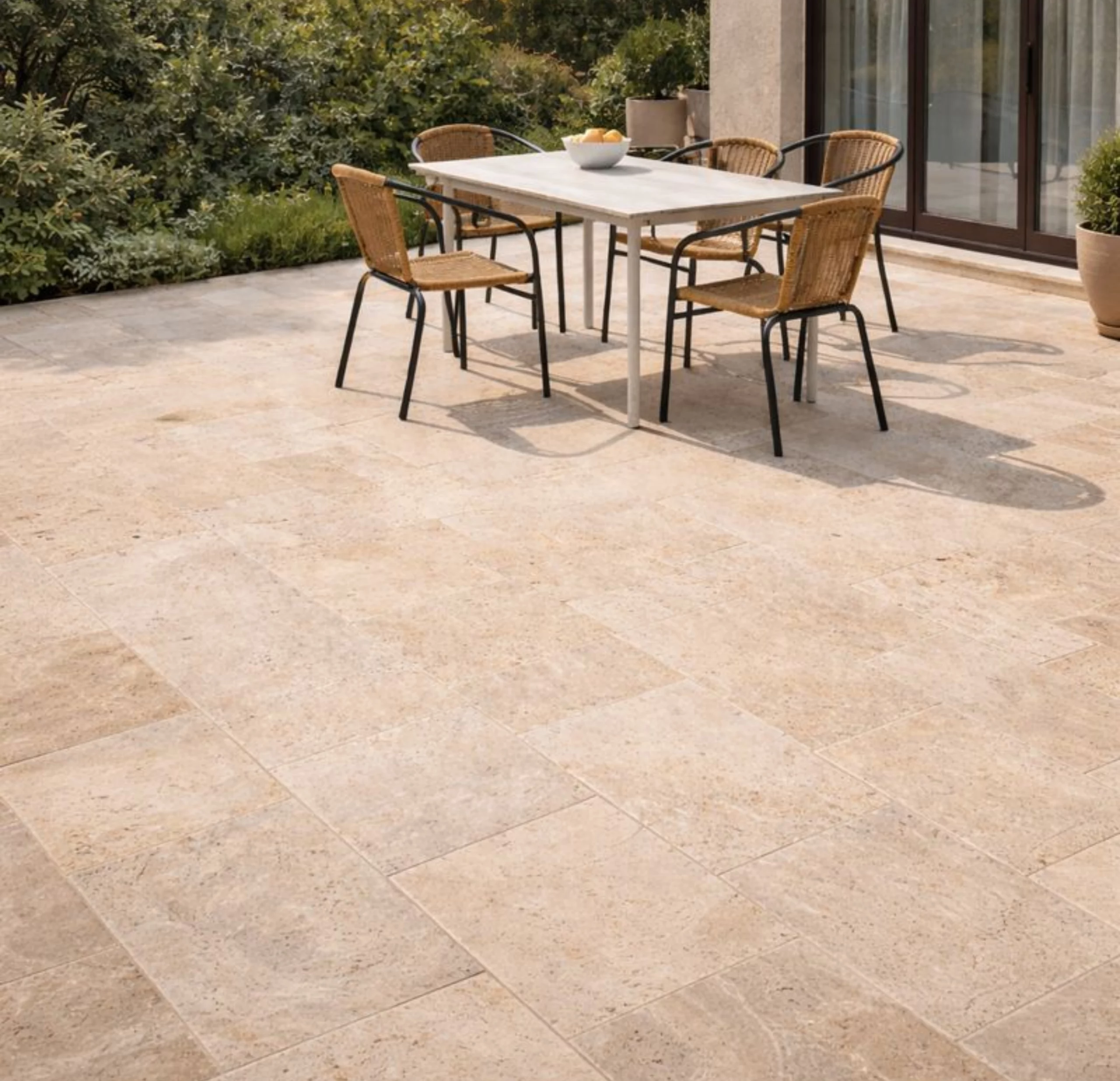 Résistante au gel et naturellement antidérapante, la dalle travertin 1er choix convient parfaitement aux aménagements extérieurs durables.