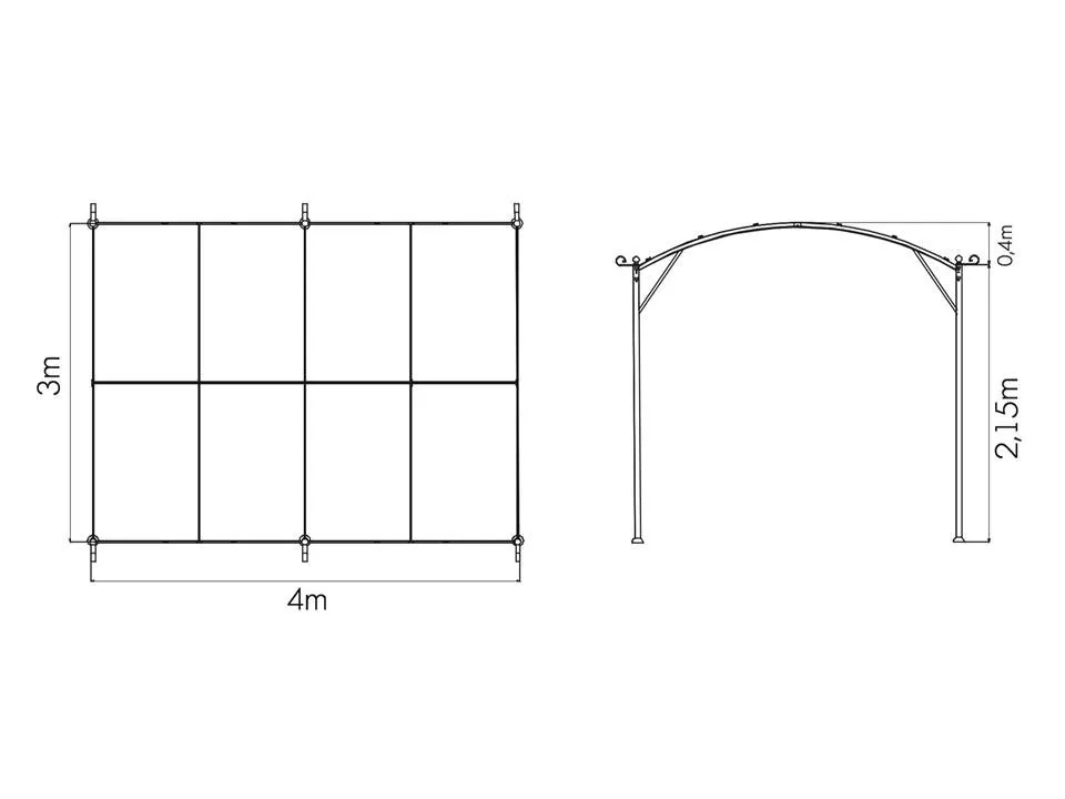 💡 À noter : Cette tonnelle est autoportante, ce qui signifie qu’elle ne nécessite aucun mur d’appui pour son installation. Elle est vendue seule, sans la toile.