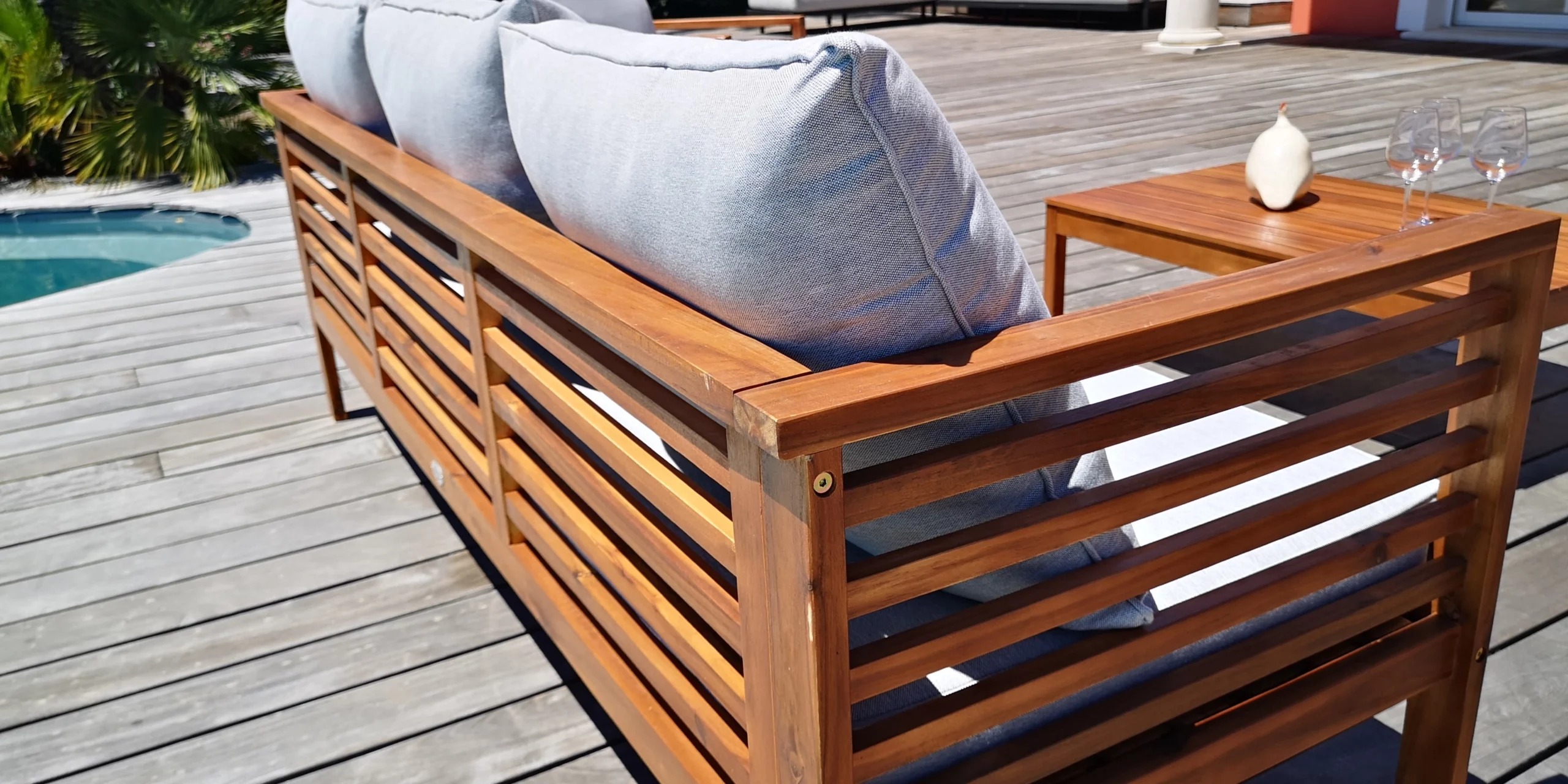 ✅ Facile d’entretien : Bois huilé et coussins déperlants