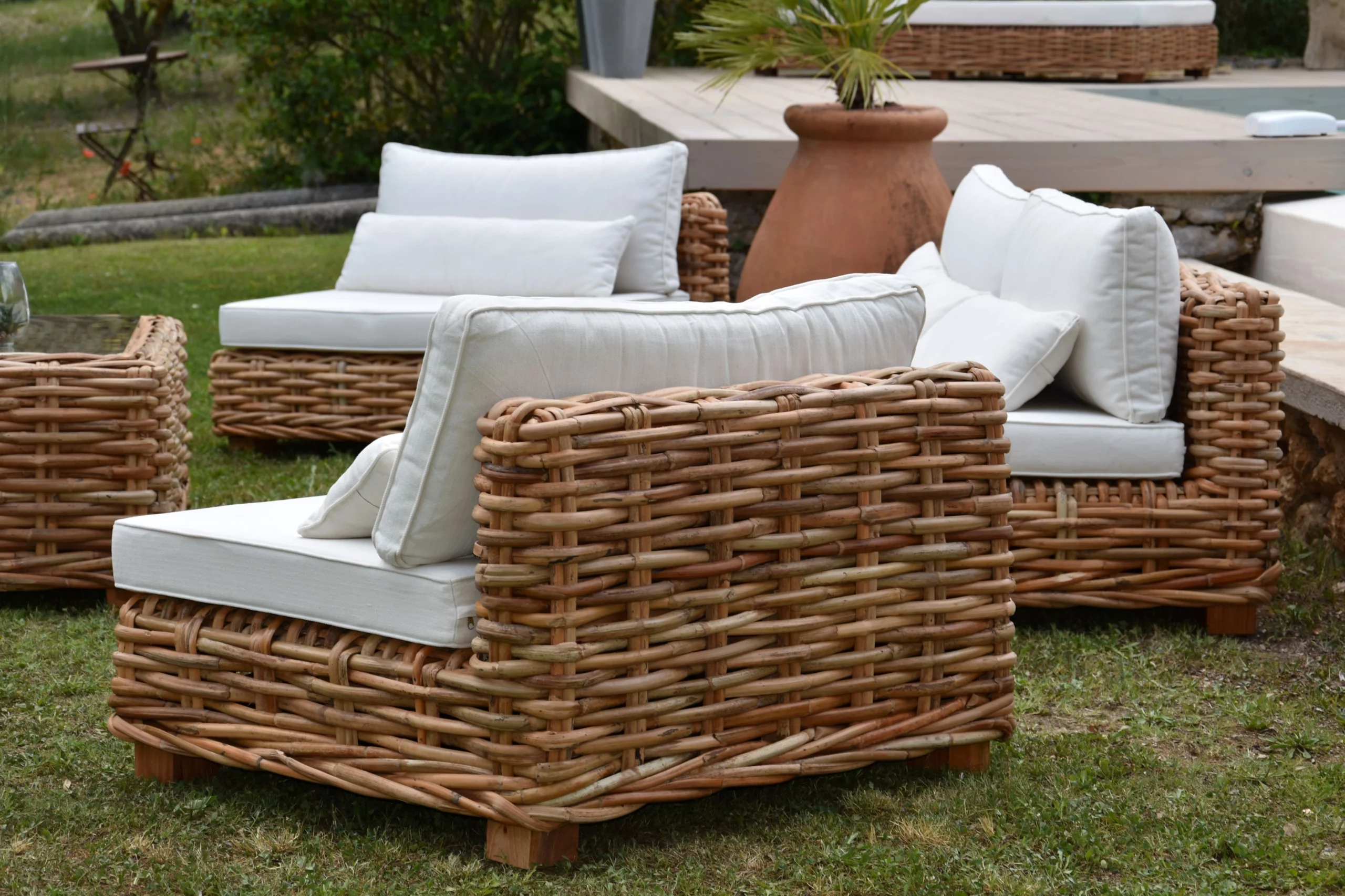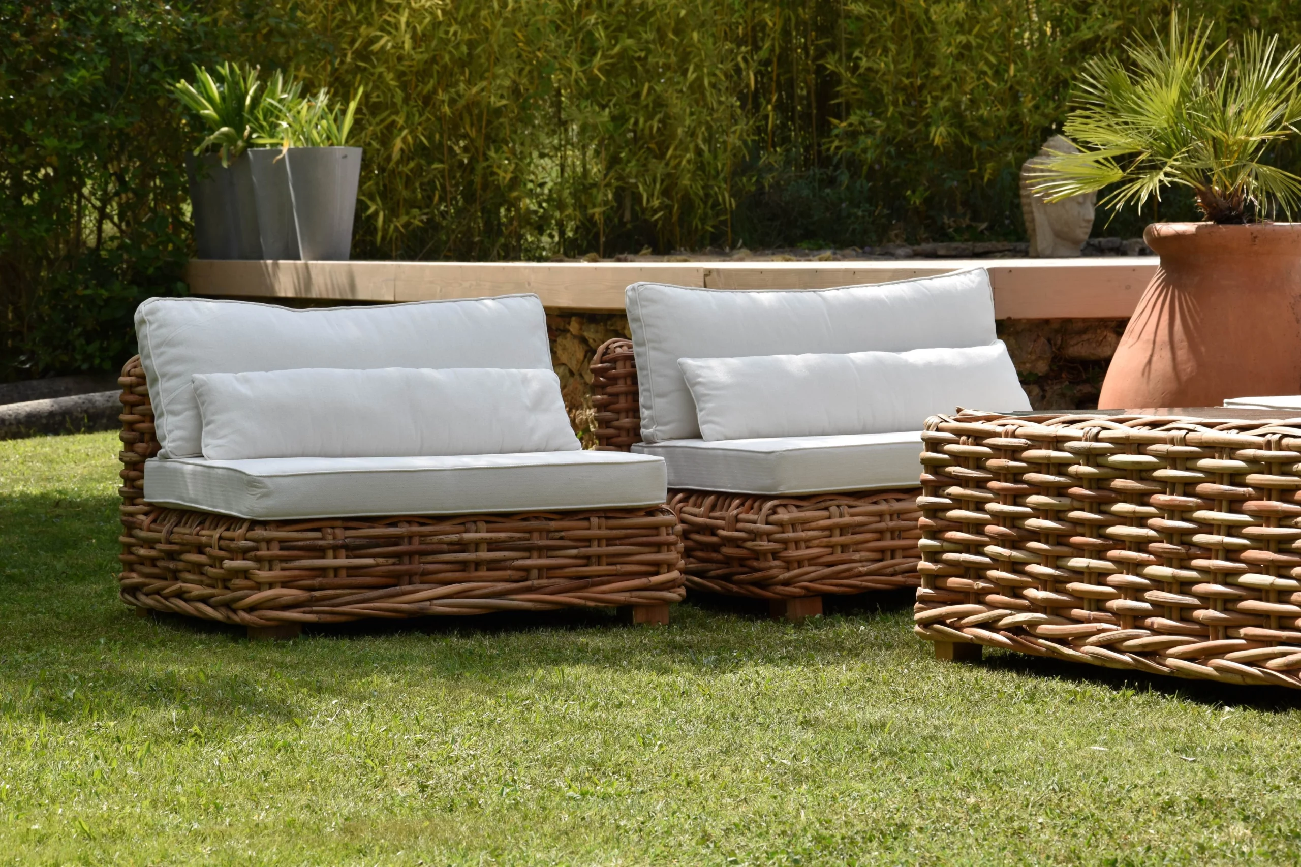 - Table basse : Rotin assorti, pratique et élégante