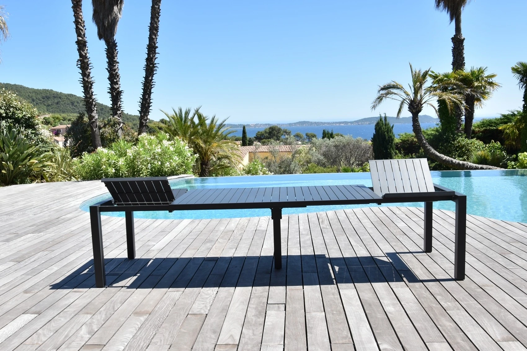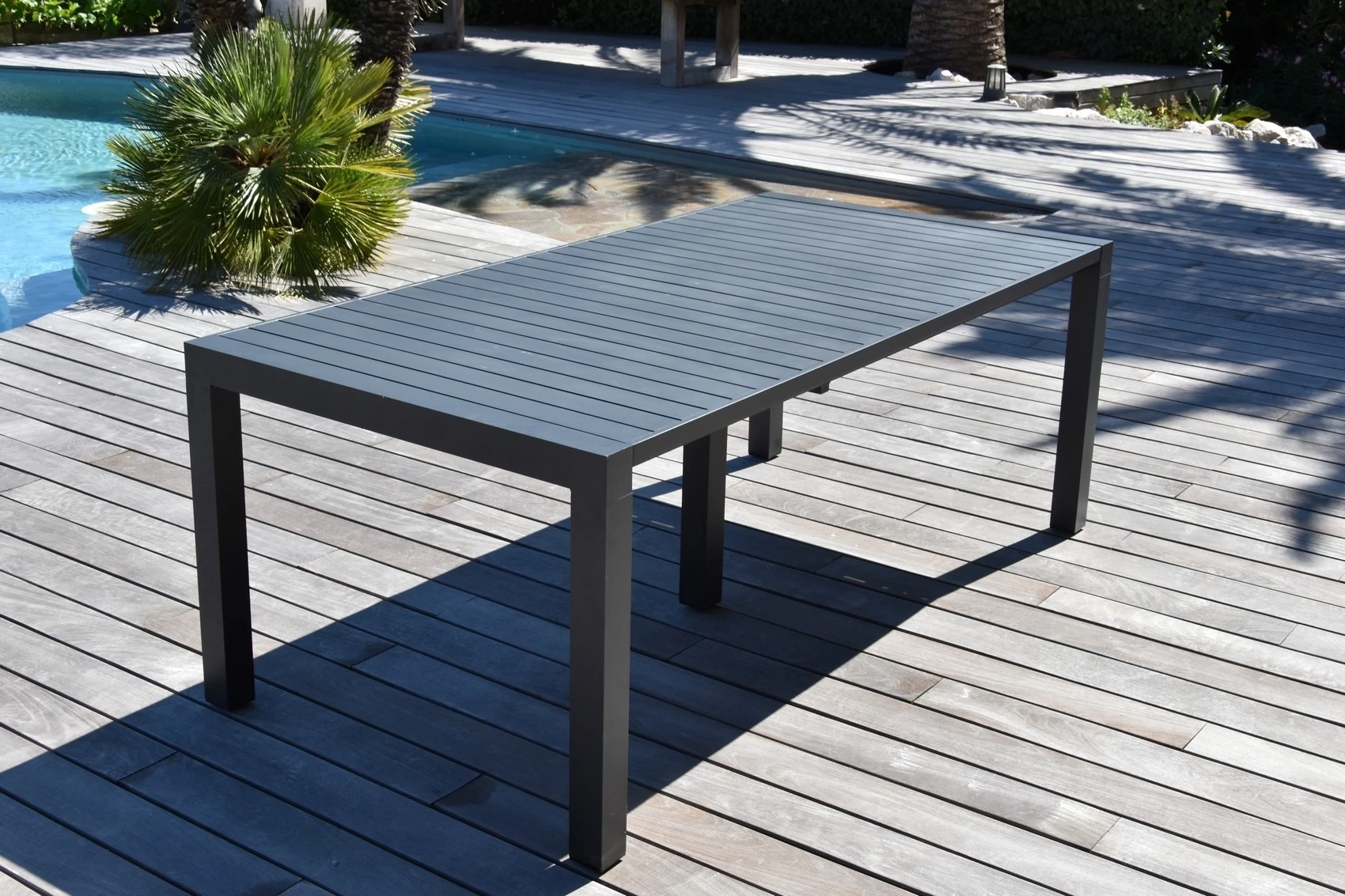 Une table élégante et spacieuse pour vos repas en extérieur