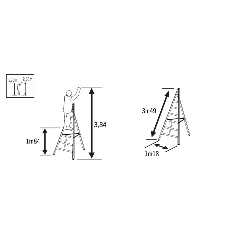 Fabriquée en aluminium haute résistance, cette échelle est anticorrosion, légère et facile à manipuler. Son large pied stabilisateur assure une adhérence optimale au sol, même sur des terrains irréguliers, évitant ainsi tout risque de basculement.